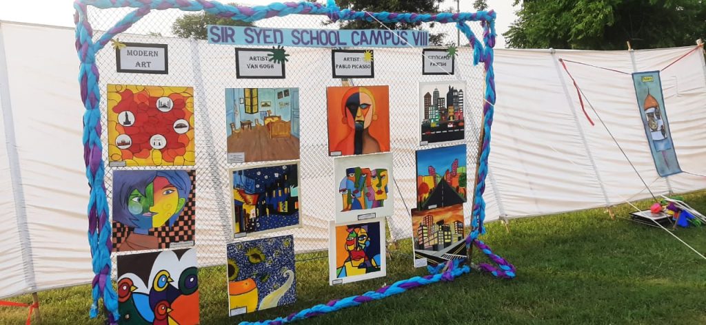 - Art And Design Society,, Sir Syed School Campus 8 , organised the Art Display ,, where SSEIS, Ten Campuses students Art Work was displayed,along with Special Children School “Nasheman” their artwork was also displayed.