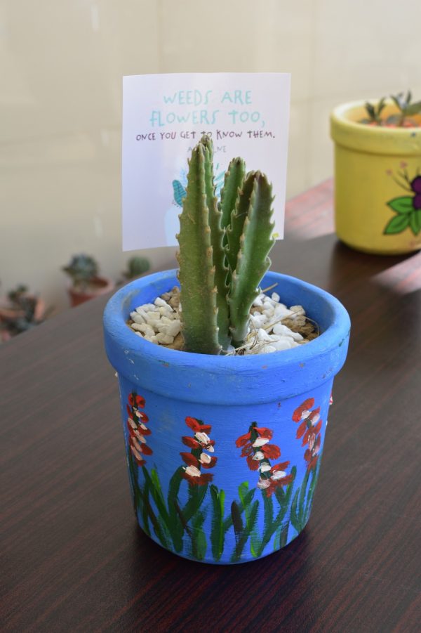 Weeds Are Flowers Too – Cactus in Blue Wildflower Pot